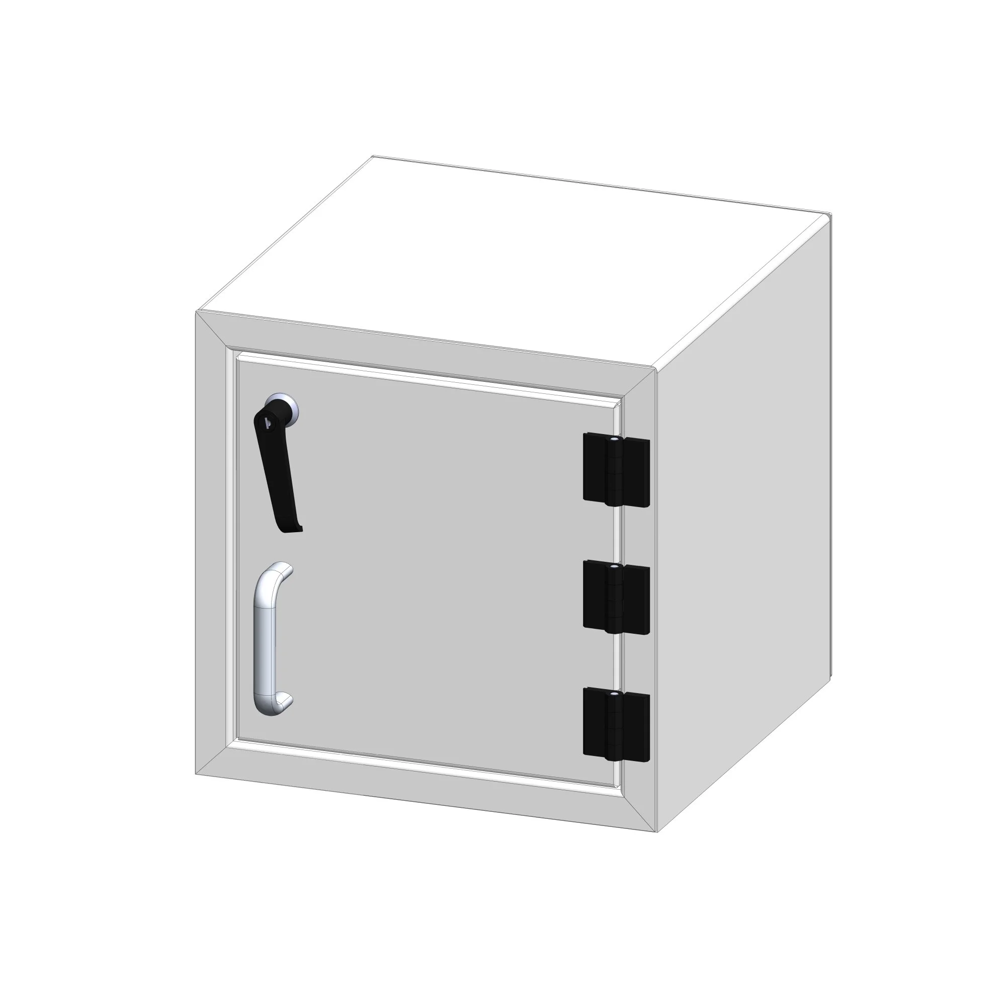 The rebated door provides a greater level of security over a conventional cabinet. The mini safe allows for lead shielding in 5mm increments with a maximum thickness of 50mm. The mini safe allows for cost effective, secure storage for a low volume of goods, such as a small number of sealed sources.