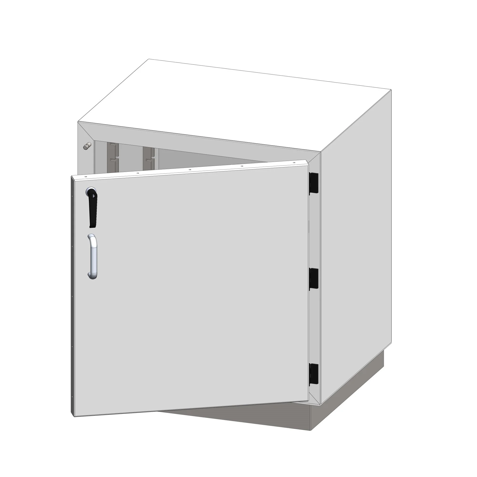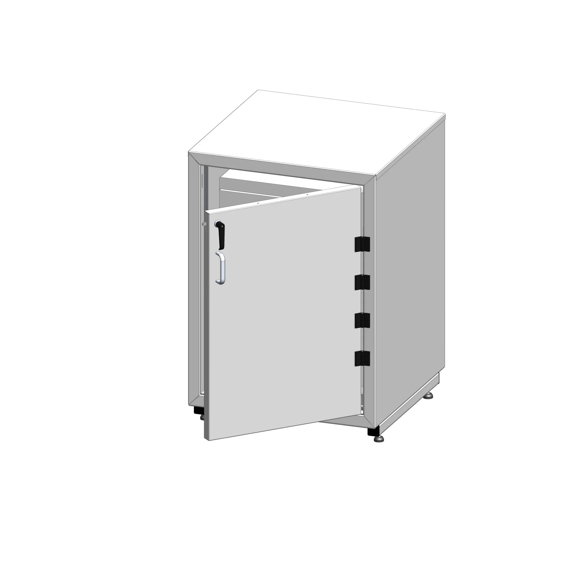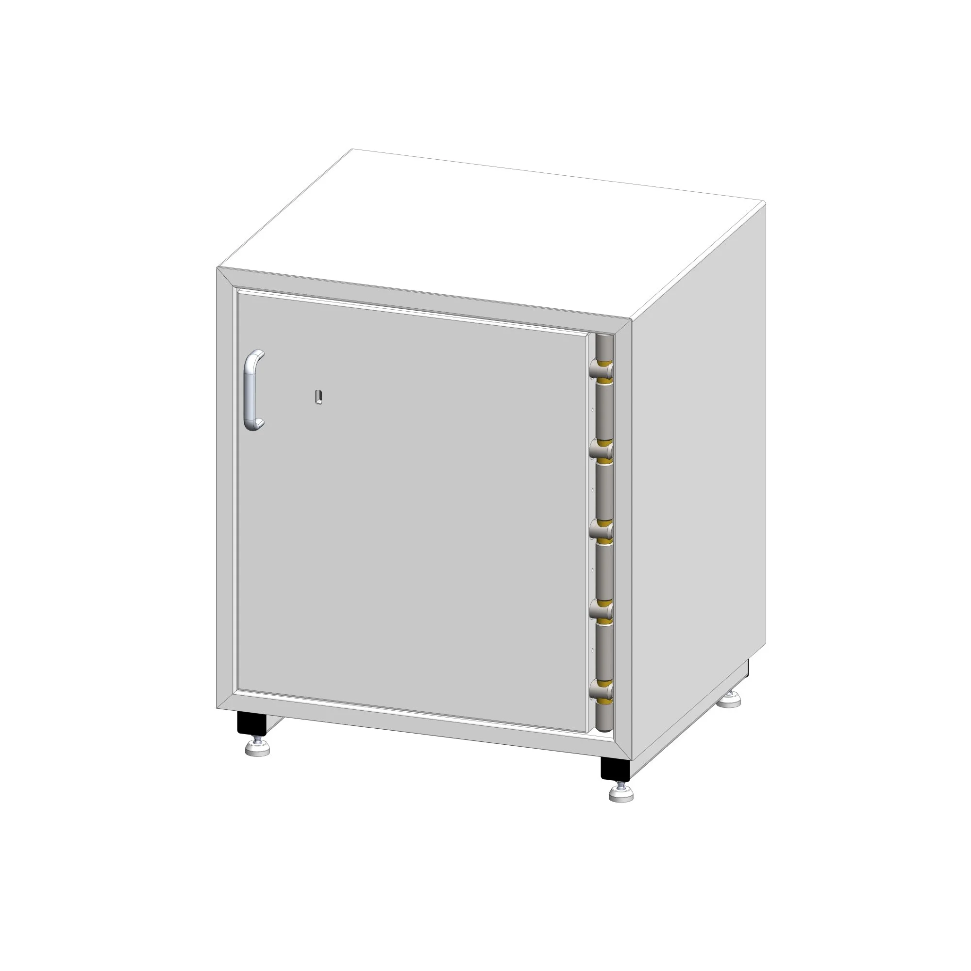 Featuring a lockable, recessed door the fridge enclosure provides a high level of security for the contents. The enclosure features vent holes in the base of the unit and the top to allow for air circulation, the lead shielding is in place ensuring shielding continuity over the vents.