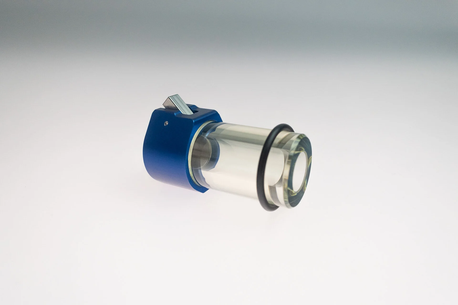 Syringe shields with lead glass viewing window for optimal visibility of the syringe. The clip-lock mechanism will make sure that the syringe is held in place. The anodized aluminium end cap has a 2mm tungsten lining to provide protection around the clip-lock mechanism. The lead glass has been designed with rounded edges to increase the strength.